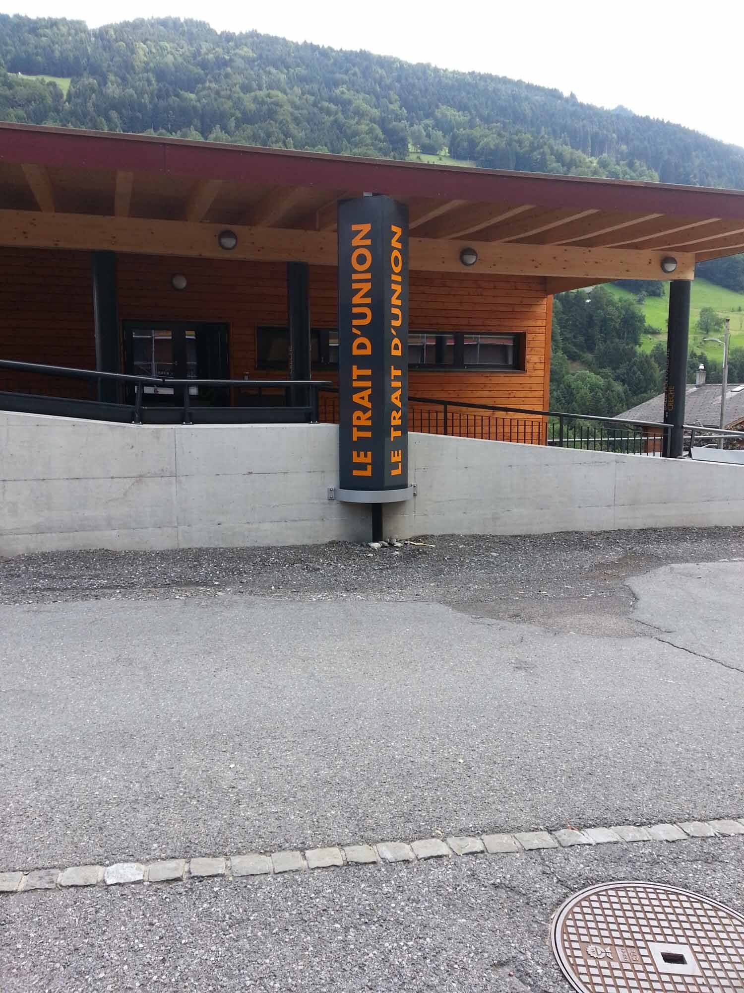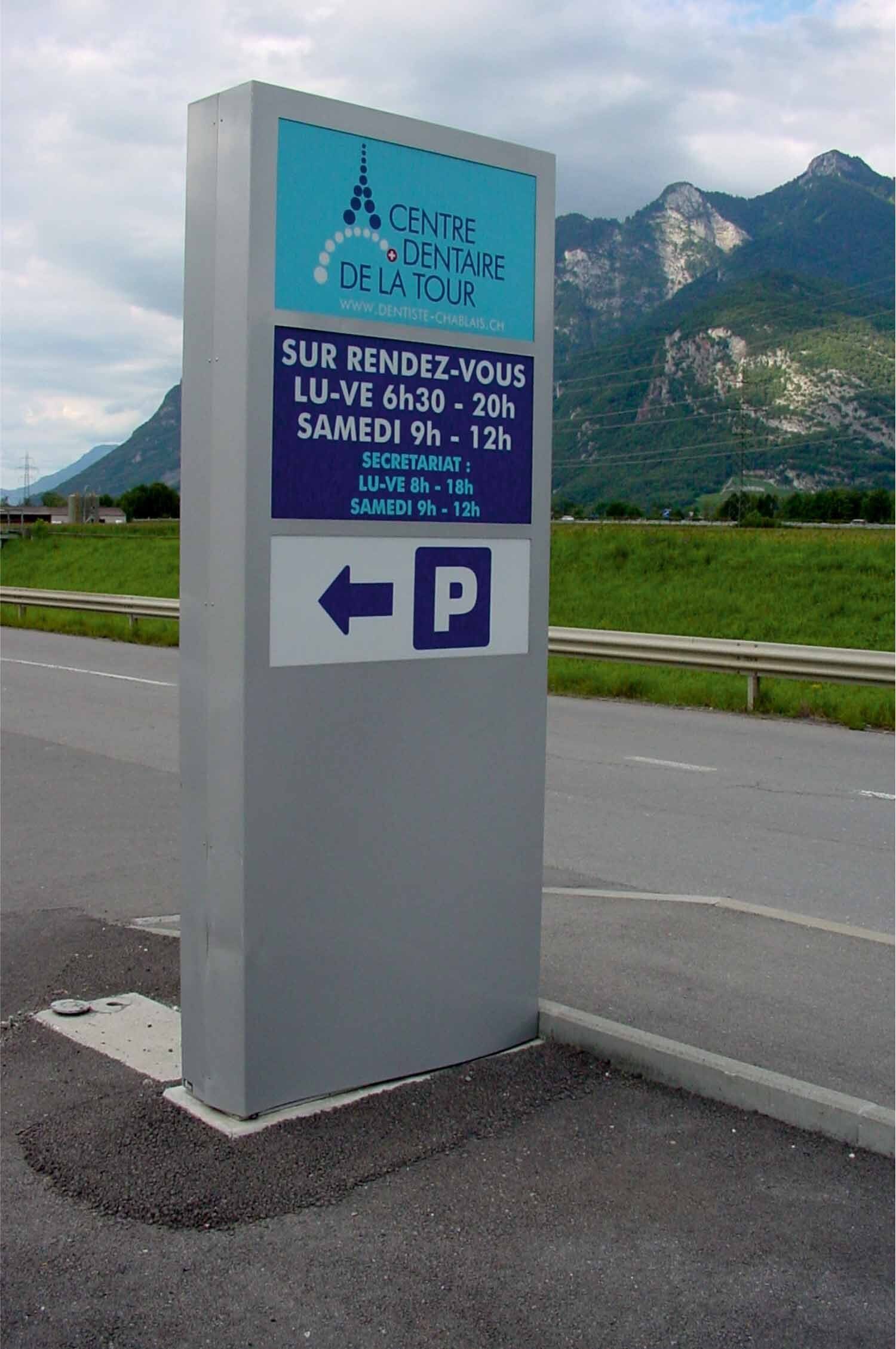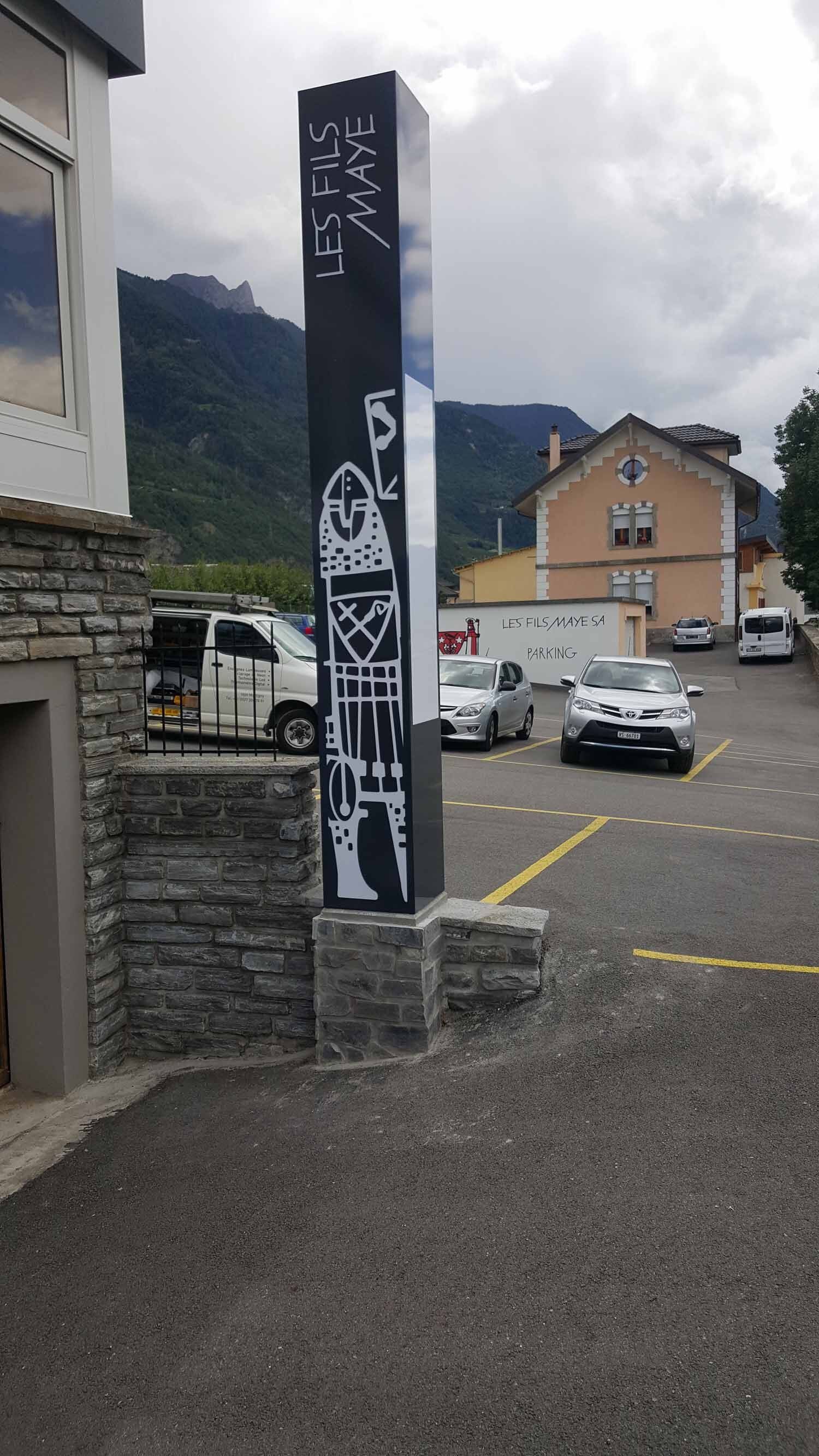 Les totems sont des enseignes lumineuses pour vision éloignée. Le plus souvent de forme rectangulaire, mais toutes les formes sont envisageables. Ils sont installés aux contours d’une parcelle afin d'afficher le nom des entreprises présentes sur un site. Une ossature centrale est composée d'acier ou d'aluminium. Un système de carrossage en aluminium finalise le design extérieur.