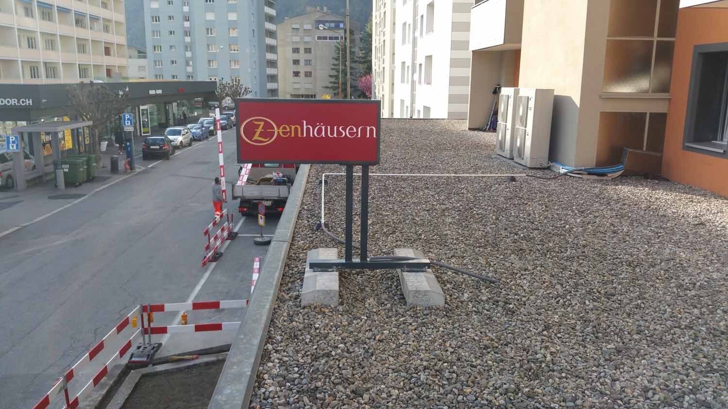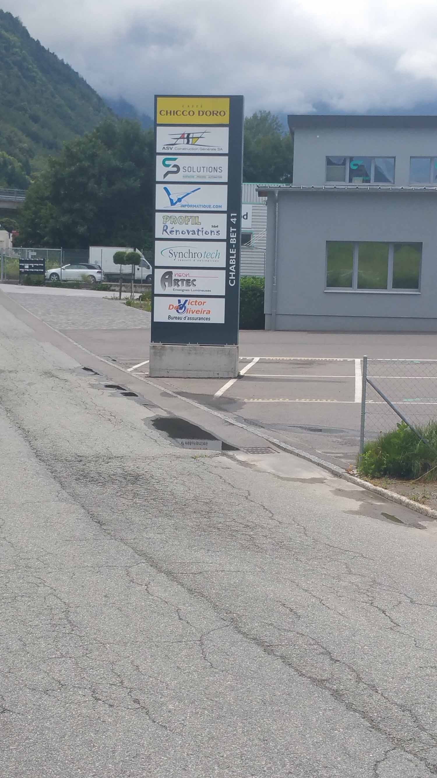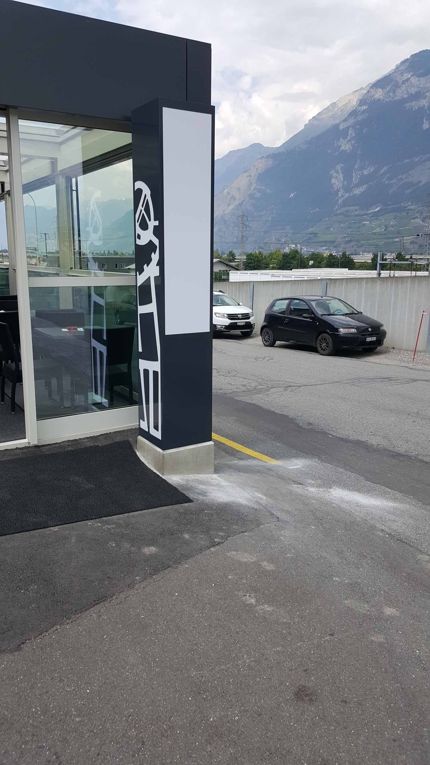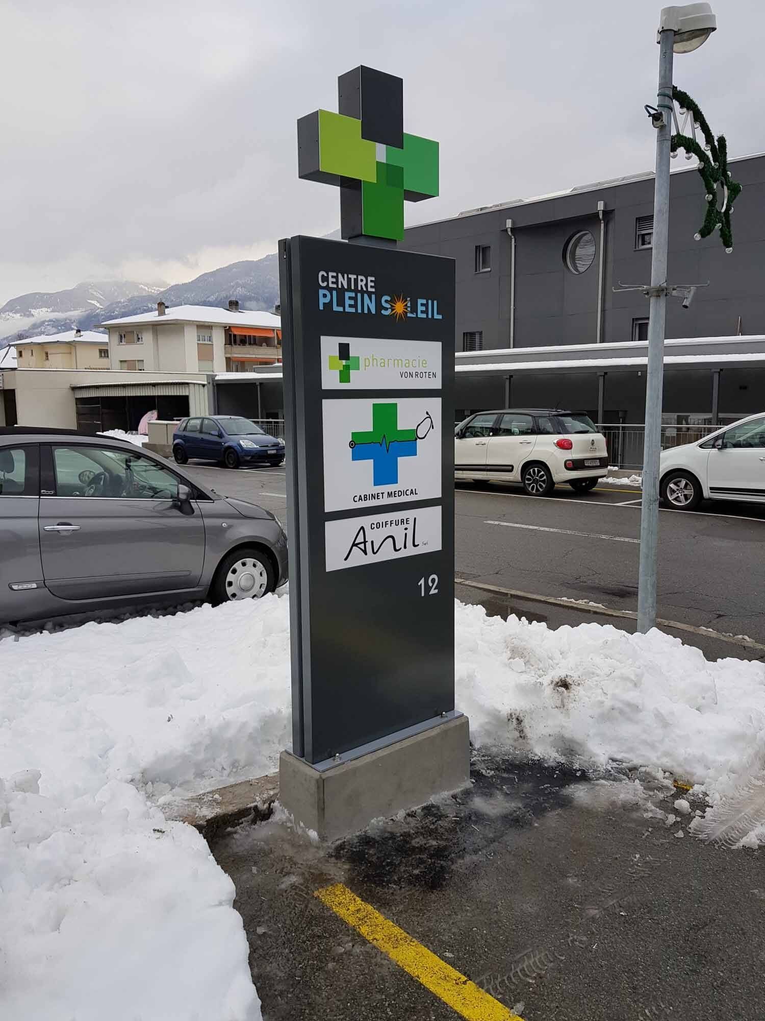 Les totems sont des enseignes lumineuses pour vision éloignée. Le plus souvent de forme rectangulaire, mais toutes les formes sont envisageables. Ils sont installés aux contours d’une parcelle afin d'afficher le nom des entreprises présentes sur un site. Une ossature centrale est composée d'acier ou d'aluminium. Un système de carrossage en aluminium finalise le design extérieur.