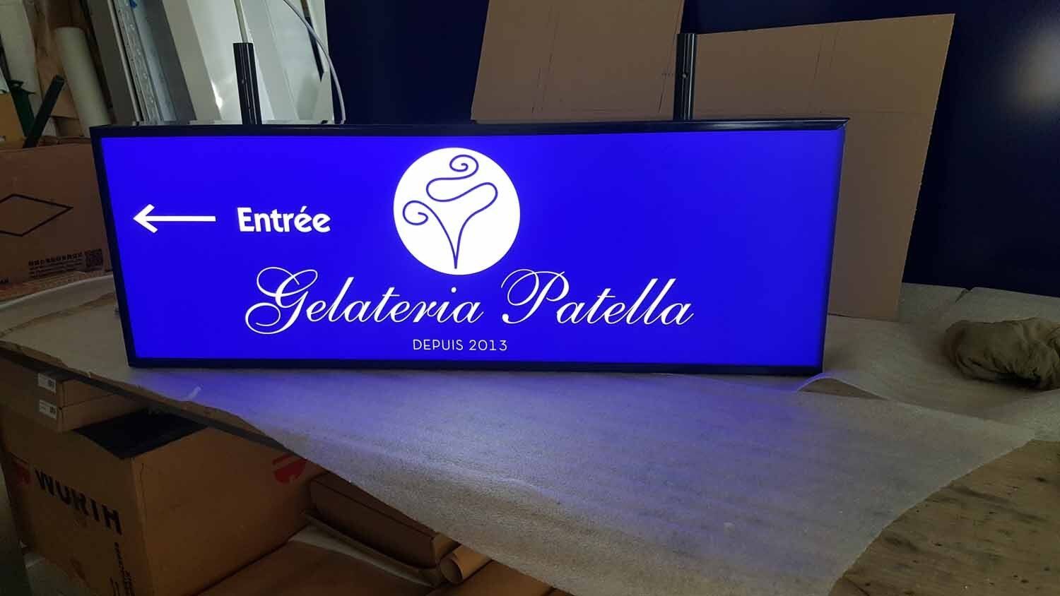 Alternative au caisson basique, possibilité de faire la face en aluminium en découpe laser et acrylique en arrière pour un aspect plus esthétique, conseillé pour une installation durable.